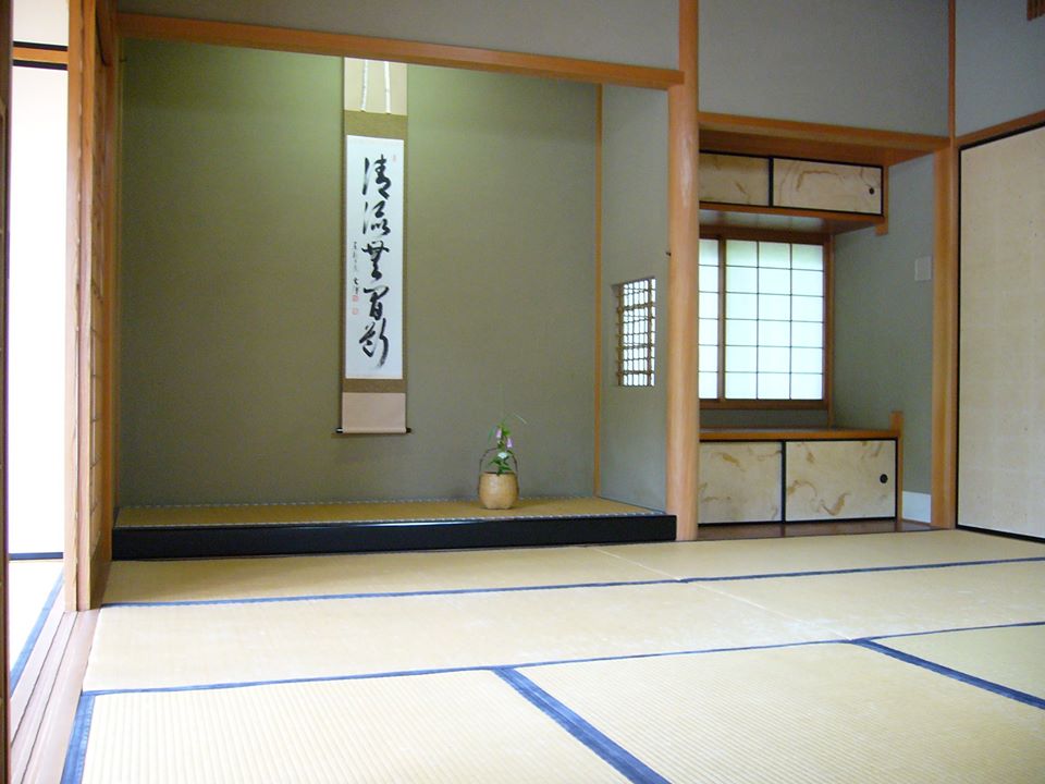 其實這個空間稱作「床之間」(床の間),台灣較常聽到的說法是「壁龕」。壁龕在和室裡向內凹,比塌塌米再高出一些,據說是以前禪宗僧侶用來放置供品的地方,現在常用來陳列掛軸、花藝或工藝品,是日式傳統和室裡的必要元素。而壁龕的擺設也透露出主人的氣質,也代表建築的精神象徵。