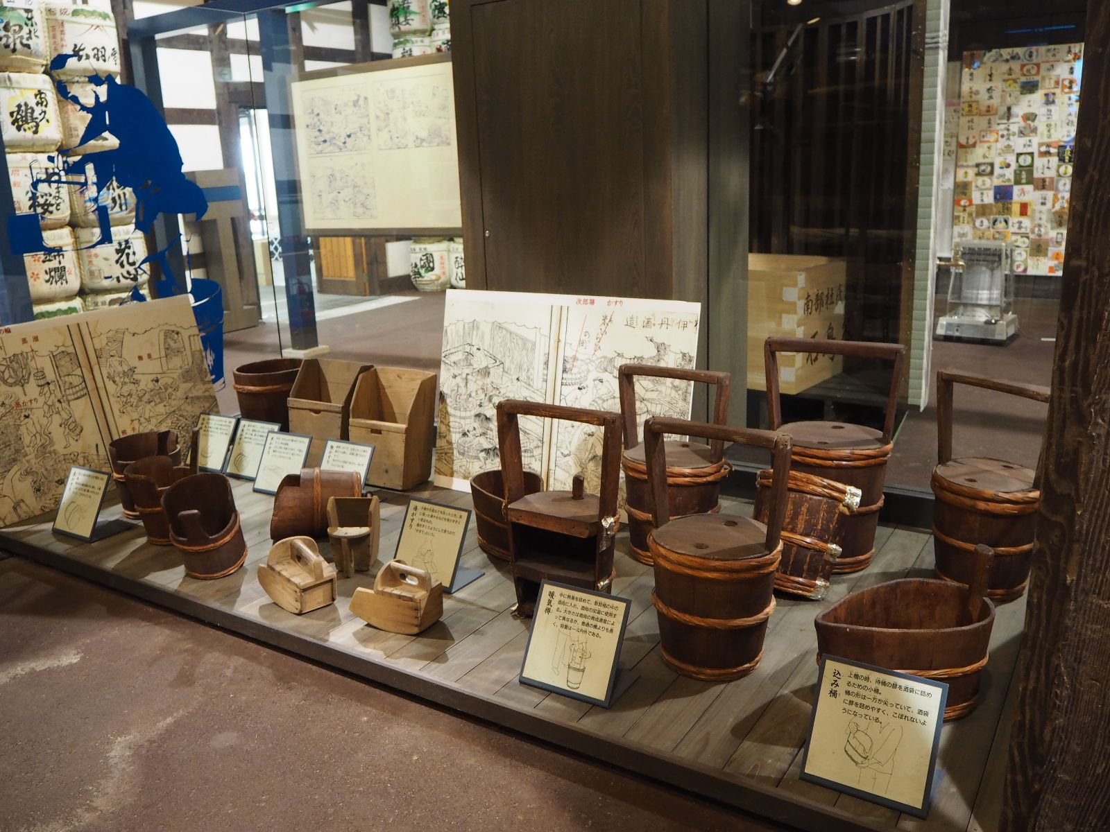 ▲釀酒師傅們用來補充水、米等原料的木桶,每一個都有不同功用呢!