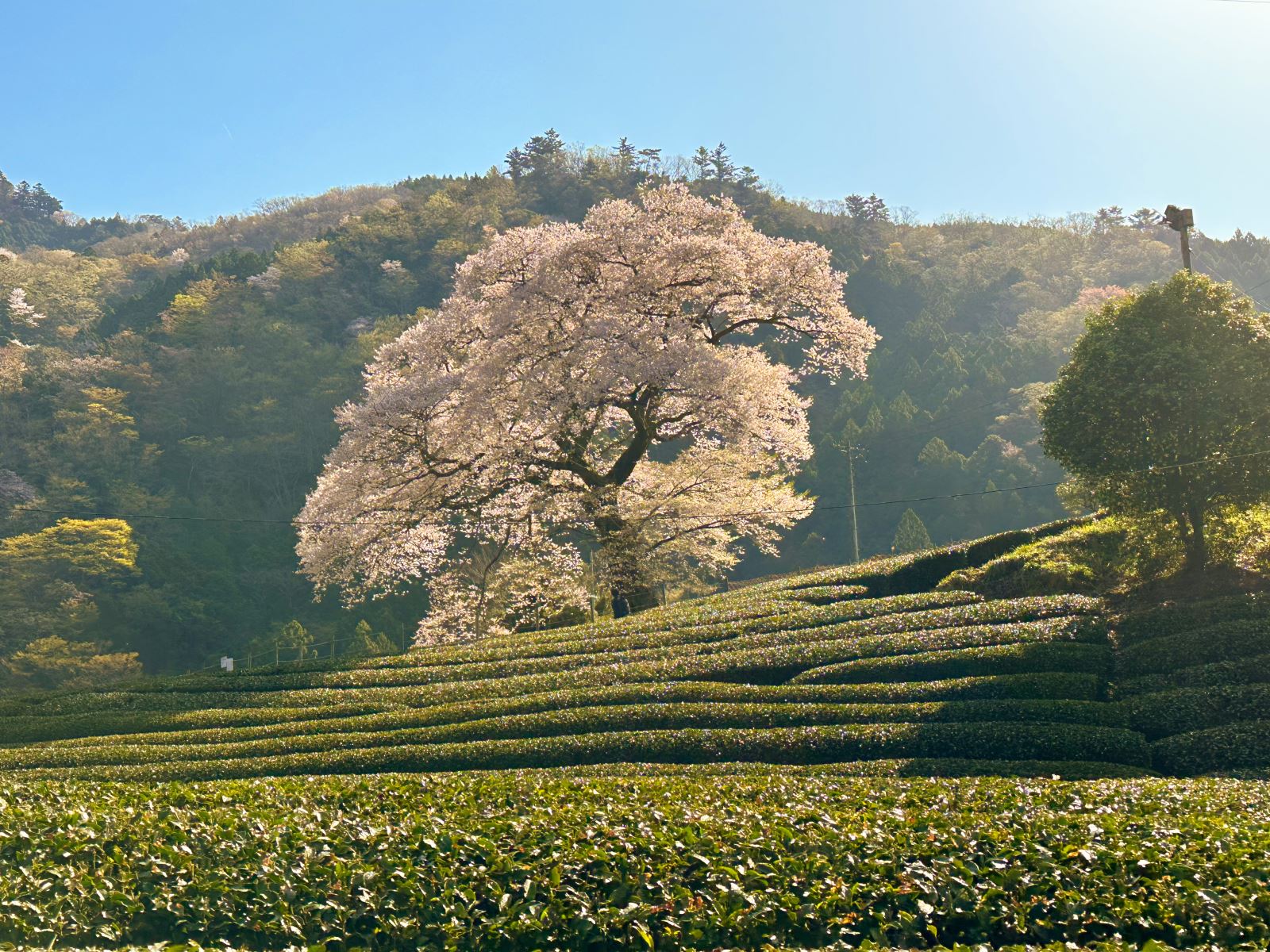距離家山車站開車車程10分鐘處,還有佇立在茶園中的一本櫻「牛代水目櫻」,樹齡超過300年、樹高20公尺、是江戶彼岸櫻品種,樹幹一圈達4.2公尺。