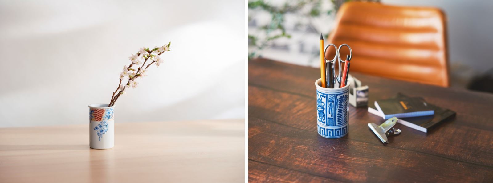 ▲有田燒杯酒可拿來插花或是當作筆筒,為生活增添一抹質感。 圖:佐賀縣產品流通設計公社/提供